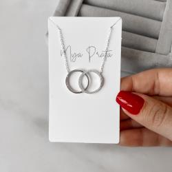 Colar círculos vazados liso e cravejado 26mm corrente cadeado 40+5cm | Mya Prata