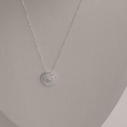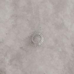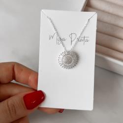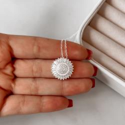 Colar pingente flor cravejada trabalhada 17mm corrente cadeado 40+5cm | Mya Prata