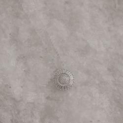 Descrição: Colar pingente flor cravejada trabalhada 17mm corrente cadeado 40+5cm fabricado(a) em prata