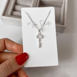Colar pingente chave cravejada escrito love 21mm 45cm | Mya Prata