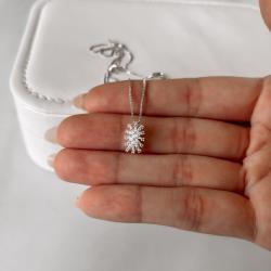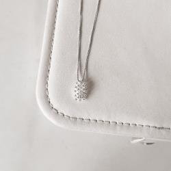 Colar pingente oval com zircônias 12mm 45cm | Mya Prata