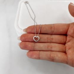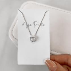 Colar coração vazado com bolinhas 10mm 45cm | Mya Prata