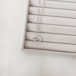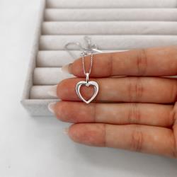 Colar pingente coração vazado com zircônia 14mm 45cm | Mya Prata