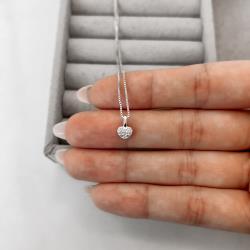 Colar pingente coração todo cravejado 6mm 40cm | Mya Prata