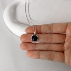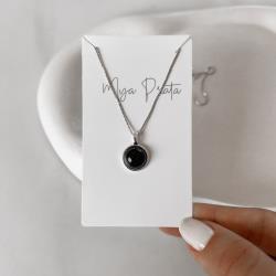 Colar pingente pedra ônix 12mm 45cm | Mya Prata