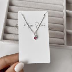 Colar pingente morango com zircônias coloridas 8mm 40cm