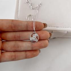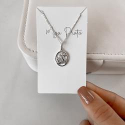 Colar pingente medalha oval São Jorge 17mm corrente cadeadinho 45cm | Mya Prata