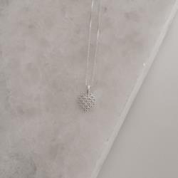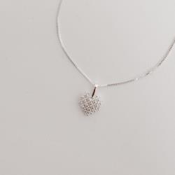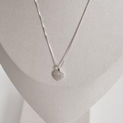 Colar pingente coração rendado cravejado 10mm 45cm | Mya Prata