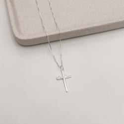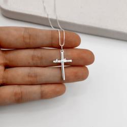 Colar pingente cruz escrito Amém 26mm 45cm | Mya Prata