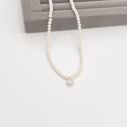 Colar cristal off irisado 4.2mm pingente zircônia gota cravejada 11mm 40+5cm | Mya Prata