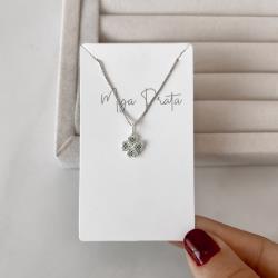Colar pingente trevo cravejado verde 9mm 40cm | Mya Prata