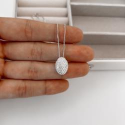 Colar pingente oval todo cravejado 15mm 45cm | Mya Prata