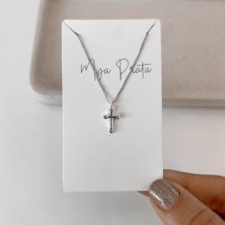 Colar pingente cruz com zircônias 13mm 45cm | Mya Prata
