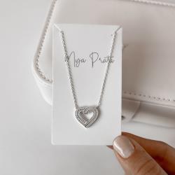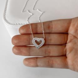 Colar entremeio coração vazado cravejado 17mm corrente cadeado 40+5cm | Mya Prata