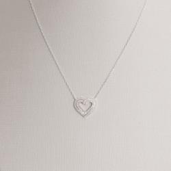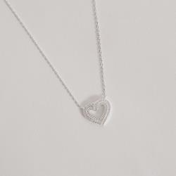 Descrição: Colar entremeio coração vazado cravejado 17mm corrente cadeado 40+5cm fabricado(a) em prata