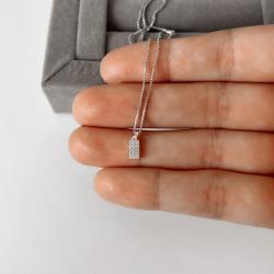Colar pingente retângulo cravejado 6mm 40cm | Mya Prata