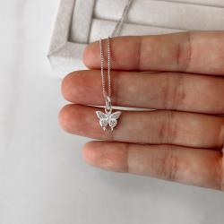 Colar pingente borboleta cravejada 11mm 45cm | Mya Prata
