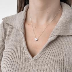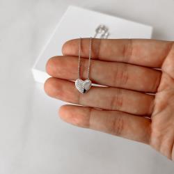 Colar coração metade cravejado 11mm 45cm | Mya Prata