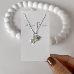 Colar entremeio círculo pingentes estrela vazada cravejada, zircônias amarela e acqua v12 45cm | Mya Prata