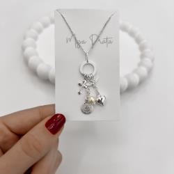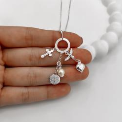 Colar pingente círculo vazado com patuá religioso 45cm | Mya Prata