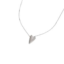 Colar pingente coração alongado de lado riscado 12mm 45cm | Mya Prata