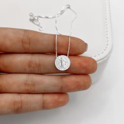 Colar medalha redonda São Bento 12mm 45cm | Mya Prata