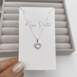 Colar pingente coração vazado com cravejado 10mm 40cm | Mya Prata