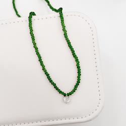 Choker cristal verde transparente 3mm pingente zircônia coração cristal 6mm 40+5cm | Mya Prata