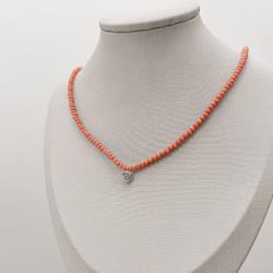 Choker cristal salmão fosco claro 3mm pingente zircônia coração cristal 6mm 40+5cm