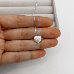 Colar coração riscado 11mm 45cm | Mya Prata