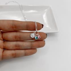 Colar entremeio círculo pingentes flor, zircônias rosa e acqua corrente cadeadinho 40+5cm | Mya Prata