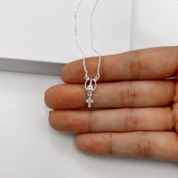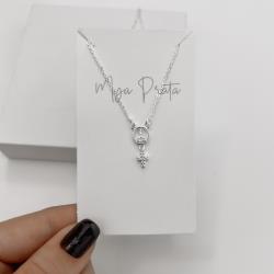 Colar pingente medalha Nsa. Sra. Aparecida com pingente cruz cravejada 17mm corrente cadeadinho 40+5cm | Mya Prata