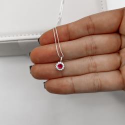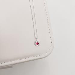 Colar pingente zircônia redonda cereja detalhe torcido 7mm 40cm
