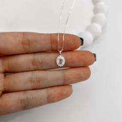 Colar pingente zircônia oval cristal detalhe torcido 10mm 45cm