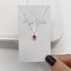 Colar pingente zircônia oval cereja detalhe torcido 10mm 45cm | Mya Prata