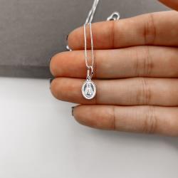 Colar pingente medalha oval Nsa. Sra. Aparecida 10mm 45cm | Mya Prata