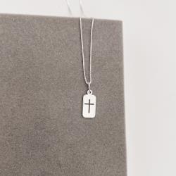 Colar pingente placa cruz vazada 14mm 45cm | Mya Prata