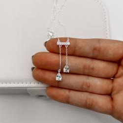 Colar entremeio bastão cravejado com pingentes zircônias gota 7mm 40+5cm | Mya Prata
