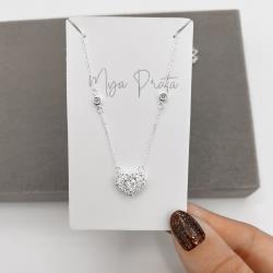 Colar coração cravejado 13mm com entremeios zircônias 40+5cm | Mya Prata