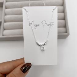 Colar entremeio zircônias redondas e gota 15mm 40+5cm | Mya Prata