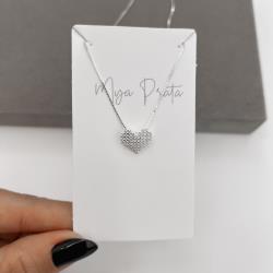Colar coração mosaico cravejado 12mm 45cm | Mya Prata