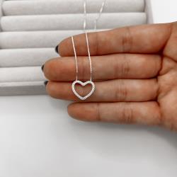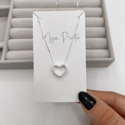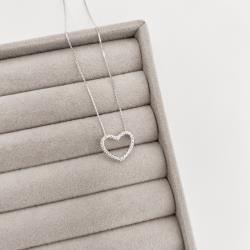 Colar coração vazado cravejado 14mm caixa alta 45cm | Mya Prata