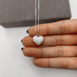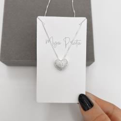Colar coração cravejado 13mm caixa alta 45cm | Mya Prata