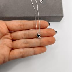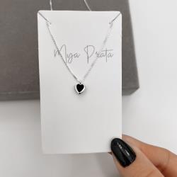 Colar zircônia coração ônix embutida 6mm 40cm | Mya Prata