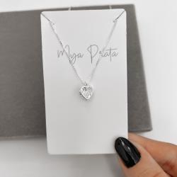 Colar zircônia coração embutida 8mm 45cm | Mya Prata