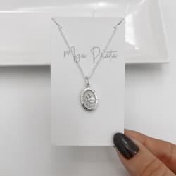 Colar pingente medalha dupla face Santo Antônio e cruz 16mm corrente cadeadinho 45cm | Mya Prata