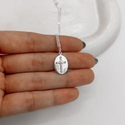 Colar pingente medalha dupla face São Sebastião e cruz 16mm corrente cadeadinho 45cm | Mya Prata
