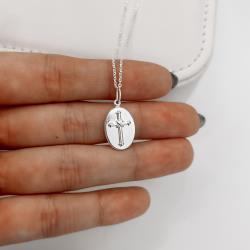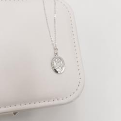 Colar pingente medalha dupla face Sagrado Coração de Maria e cruz 16mm corrente cadeadinho 45cm | Mya Prata