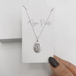 Colar pingente medalha dupla face Santa Ana e cruz 16mm corrente cadeadinho 45cm | Mya Prata