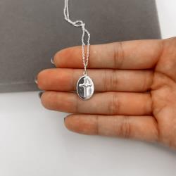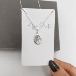 Colar pingente medalha dupla face Nsa. Sra. Aparecida e cruz 16mm corrente cadeadinho 45cm | Mya Prata